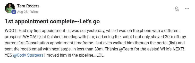 Inside our Skool community, members share daily wins, breakthroughs, and success stories as their systems start producing results — proof that when you plug in, it works.